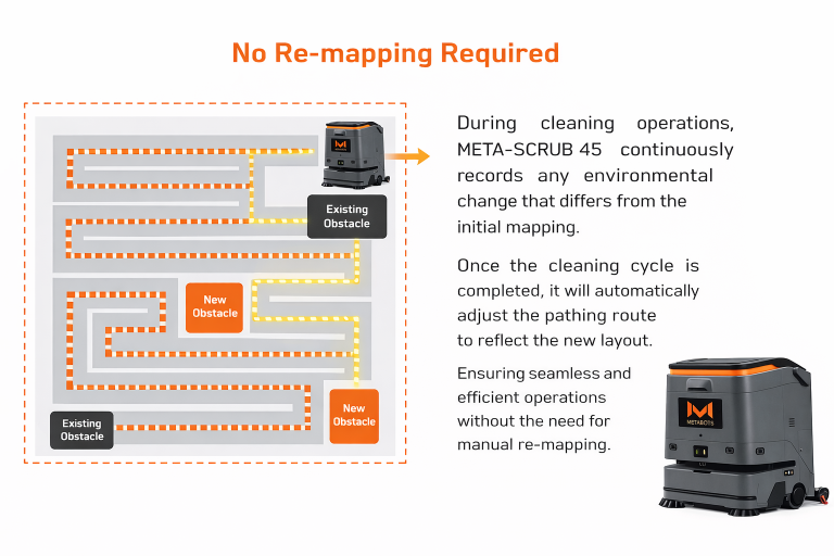 Automatically identify environmental changes, adjust existing map changes and perform cleaning tasks according to cleaning requirements.